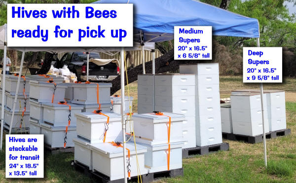 Each nuc of bees, including the transport tote, can weigh up to 25 - 30 pounds,
