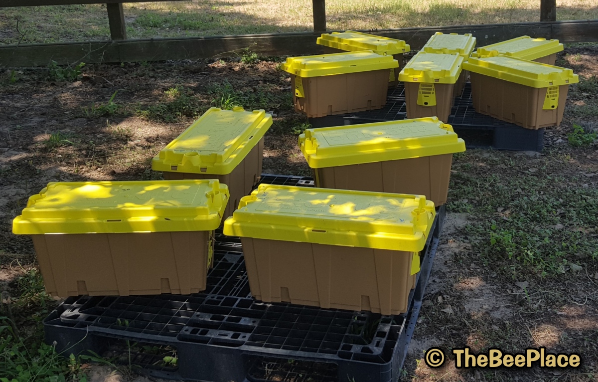 The bees will be contained in the hives with the tops fastened closed for