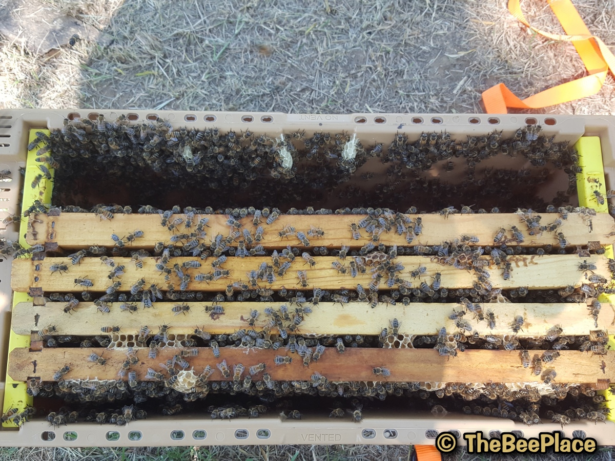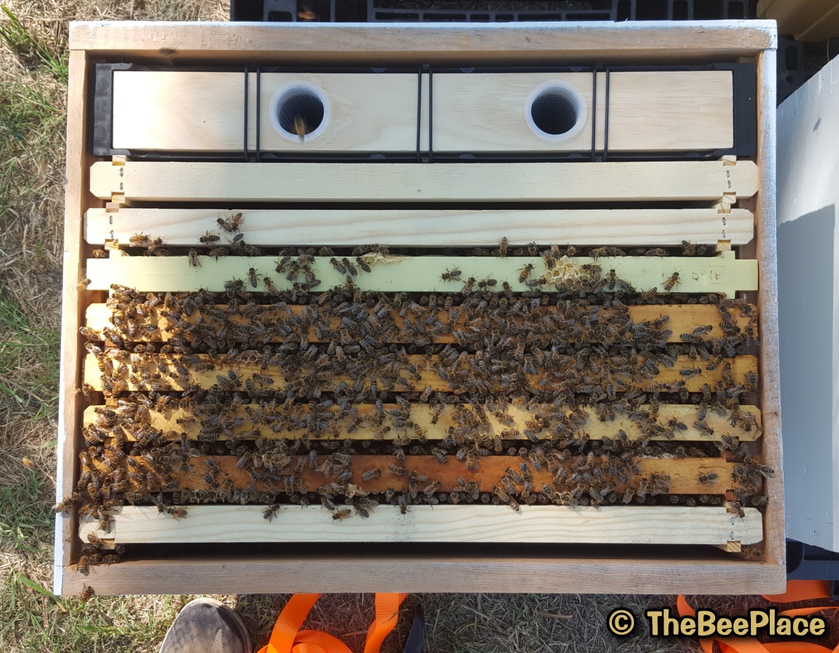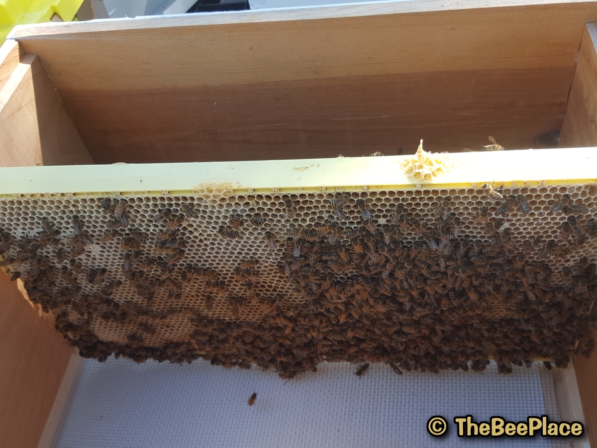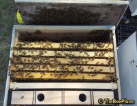 | Step 4: Place the frame of bees into the hive