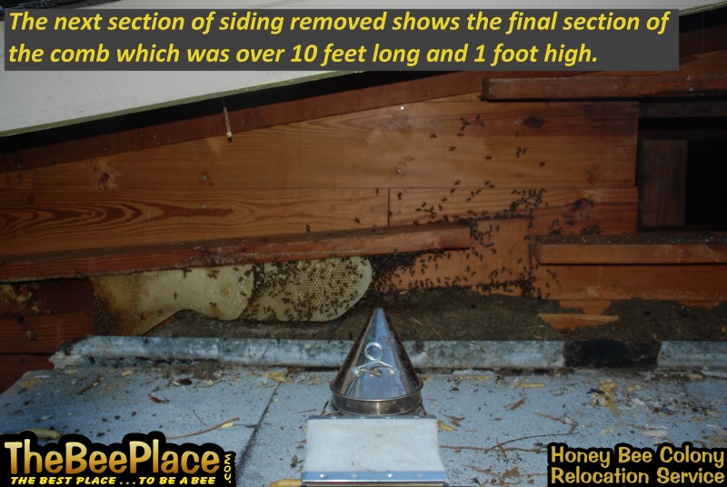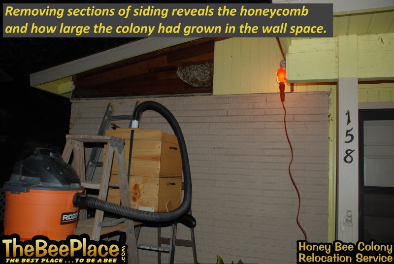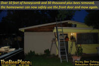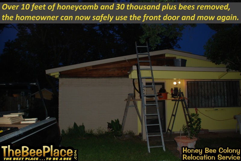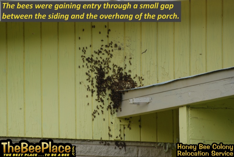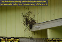 that moved into a client's wall over their front porch. The client was unaware of the size, but wanted the bees removed and