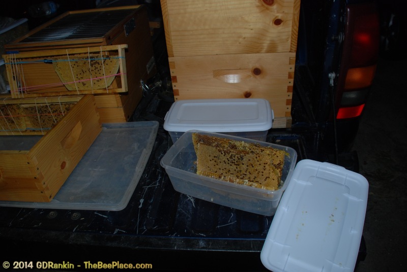 Once the bulk of the bees are contained, the box is closed and the entire colony is relocated to our safe and eco friendly bee yard where they will join other hives and do what bees like to do, collect pollen and raise their young. |